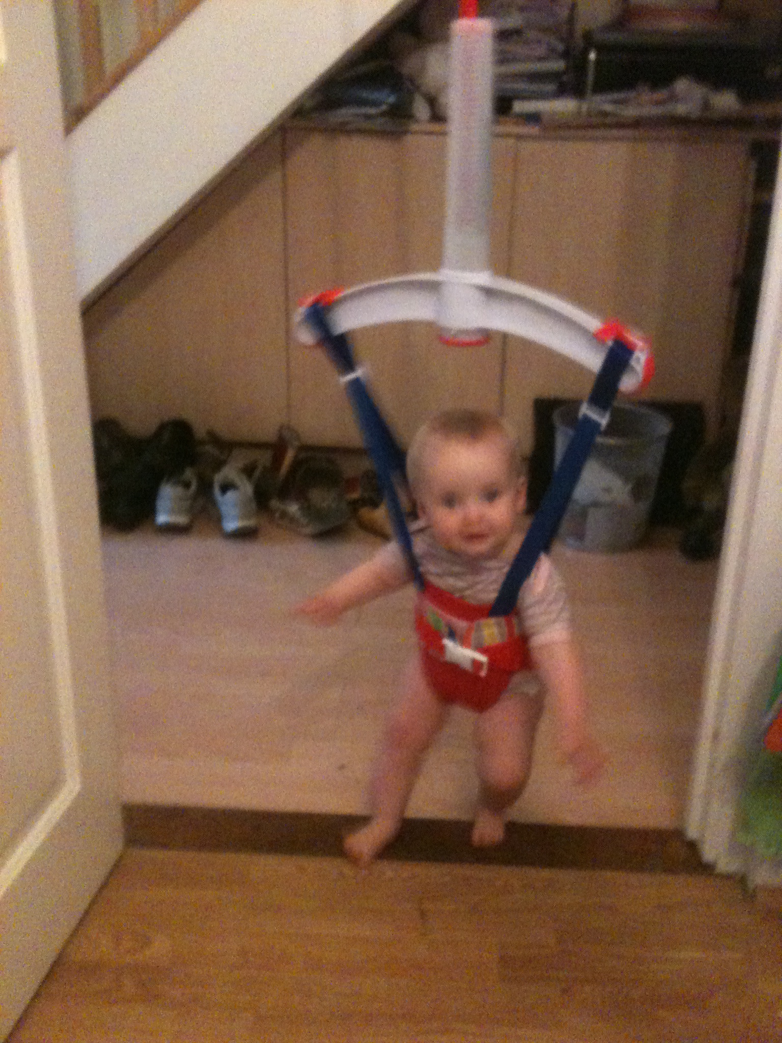 Whilst the first few times they do it can be incredibly entertaining for whichever adult is holding them up in the optimum bouncing position, after a few hours (they don’t give up easily, babies) you might find your arms are starting to ache just a bit.