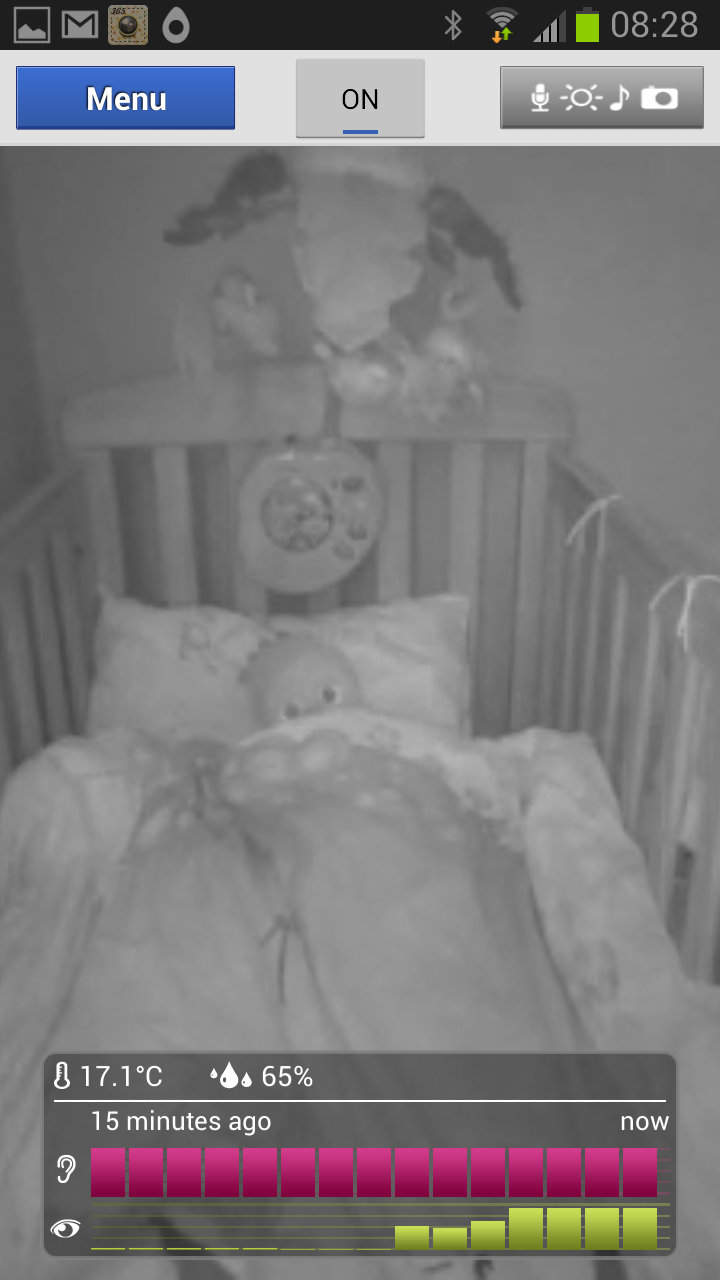 Initially I was confused, as the picture was intermittent, only showing for a couple of seconds before blanking out again. It was also focused to the right. A quick swipe of the screen readjusted the focus to the centre once I’d had a little think about it and realised that was the likely solution, but the intermittency was a bit more puzzling. The instruction manual shed no light on this, so I consulted Withings online FAQ’s, which are very comprehensive. Working through the troubleshooting information, I realised that the monitor wasn’t open fully and this was what was causing the problem. A quick creep into Bubby D’s room, a little adjustment…and we had uninterrupted good quality viewing of her sleeping happily.