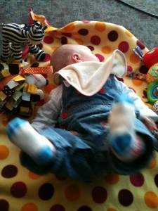 On Wednesday, Bubby D went to her second session of baby massage at our local Children’s Centre – the first was leg massage, and this time it was tummies. She loves it! It’s really nice as a quiet bonding time for both of us (there’s not much of that going on when the Wee Man and the Other Half are around too – the description ‘bedlam’ is more appropriate on those occasions) so its nice to take a bit of time out and relax together. Bubby D is all smiles as I do ‘the sun and the moon’ – a rather complex move which involves hands going in all directions…a bit tricky for someone with no co-ordination like me but she seemed to enjoy it anyway.