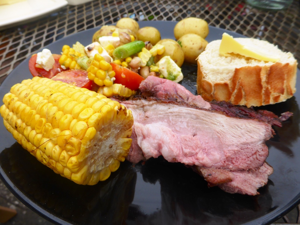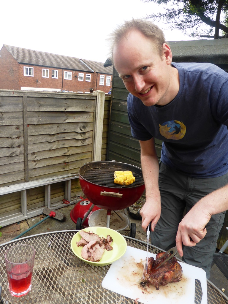 Once both sides are nicely browned, spread the coals towards the sides of the barbecue and continue to cook the lamb in the centre over a lower heat for around 40 minutes, turning it from time to time. This will give slightly pink meat, so if you prefer your lamb slightly more done leave it on a few more minutes.