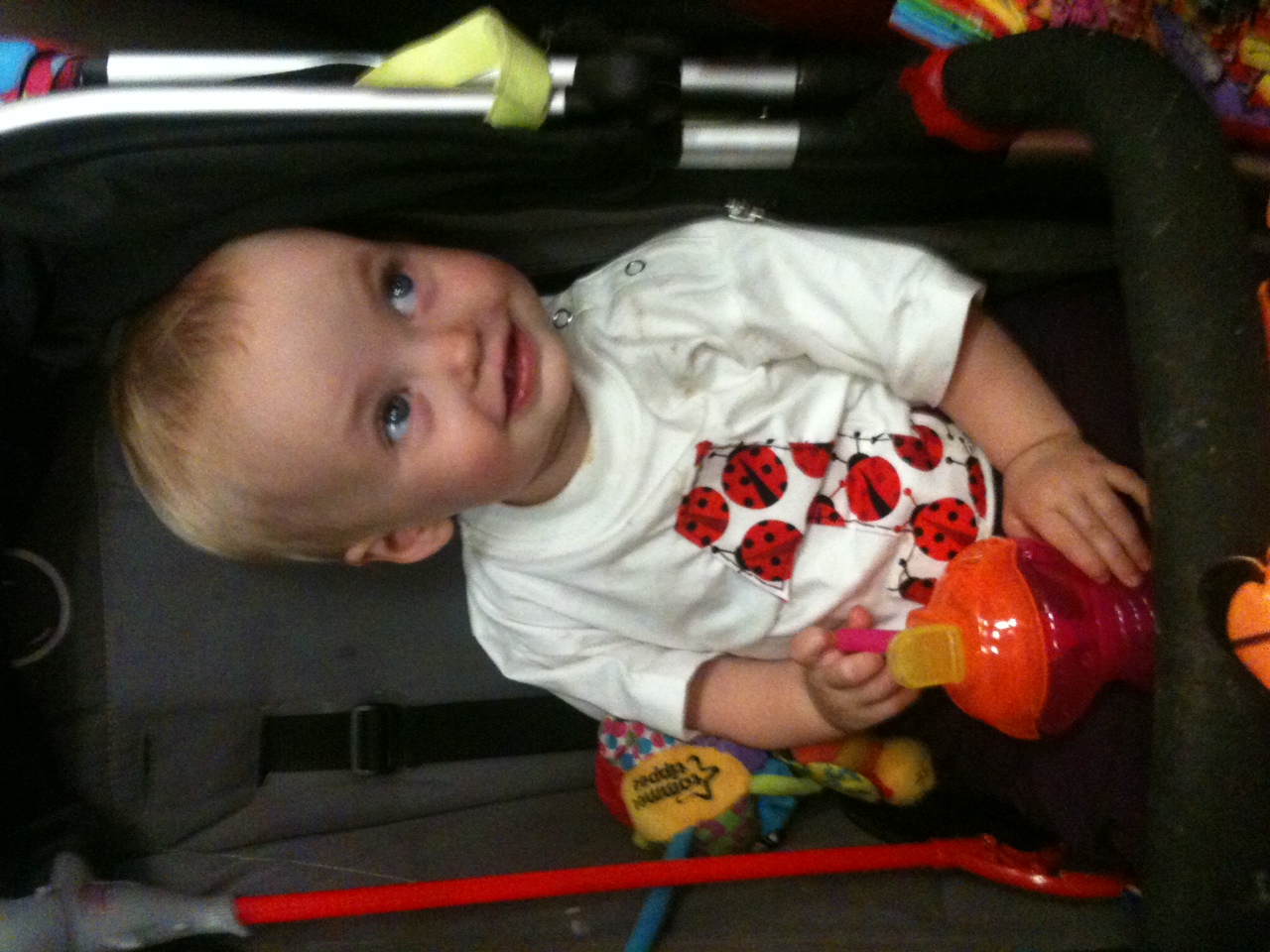 I did note however that there was a little bit of leakage from the straw, and the bottom of the pushchair had a marked damp patch from this. From what I could see, this resulted from anything that was left in the actual straw draining out of the cup whilst it was lying on its side or upside down – once this was out then the rest of the drink stayed in with no problems. Not a huge issue, and definitely not the leakage you’d get from a free flow cup – but I’d be interested to see whether the non flip-top straw variety worked any better.