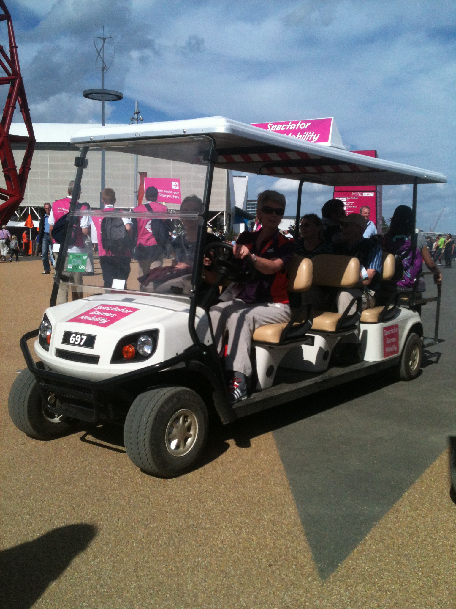 Despite the pushchair friendliness, you may decide you don’t want the hassle of parking it up, or manouvring it through the crowds. If you do decide to take a little one with you, and (inevitably) their feet get tired, then fear not! The Games Mobility service is on hand to provide transport around the park for anyone who finds it a little harder to walk than most and Bubby D and I took advantage of their handy mobility vehicle to have a tour of the park (the mobility buggies travel around the whole park on a circuit, with stops clearly signposted and identified on the park maps). By this point, Bubby D (who had refused to nap all day, so amazed was she by all the sights and sounds) finally dropped off as she was lulled to sleep by the gentle movement as we wound our way around the various venues.