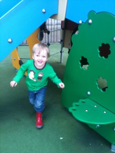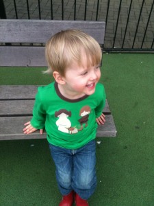 Bubby D has yet to try her outfit (giraffe tights and a matching vest top, with a pink – yes, I know what I said about pink but it’s a lovely bright pink – cord pinafore dress) as it’s too big for her, even with the cunning fits-for-ages devices built in, but I’m sure that when she does get to wear it, she’ll love it just as much as the Wee Man loves his 🙂